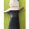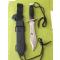 solide lame inox brillante de 18 cm épaisse de 4 mm au ricasso, avec scie au dos et faux tranchant.