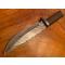 L’acier damas utilisé est constitué de plusieurs couches et a été plié et frappé avec deux types d'acier, un acier tendre et acier dur (1095 et 15N25) afin d’obtenir une pièce de qualité de 150 à 200 couches selon les modèles. La dureté de l’acier est de 56-58 HRC sur l’échelle de ROCKWEL