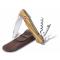 SOMMELIER VICTORINOX WINE MASTER OLIVIER Manche en bois d'olivier, longueur 130 mm comportant 4 pièces pour 6 fonctions : 1. grande lame blocable 2. tire-bouchon 3. double levier avec : 4. - décapsuleur 5. lame coupe-capsule 6. anneau Livré avec un étui en cuir
