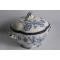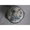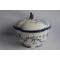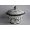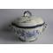 Soupière en faïence, terre de fer de Creil et Montereau Service Tournesol au décor bleu représentant des fleurs de tournesol et un brin de muguet avec bords polylobés peignés de bleu d'époque fin XIXe siècle bon état