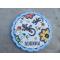 Dessous de plat de forme ronde souvenirs de voyage d'Espagne, imitant différents morceaux de carrelage, avec inscription "Benidorm".