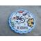 Très beau décor polychrome joliment détaillé, avec fleurs feuilles, lézard au centre, et bordure de couleur bleu.