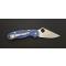 Le manche est en G-10 texturé de couleur bleu cobalt, offrant une bonne prise en main et une sensation solide au toucher, même dans des conditions humides. La construction inclut un système de verrouillage Compression Lock, fiable et facile à manipuler à une main.