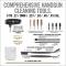 Il s'agit de la première station d'entretien MASTER la plus complète pour armes de poing qui inclus un tapis et l'outillage nécessaire au nettoyage. Chaque outils adaptés du calibre .22 au .45 sont soigneusement rangés dans une boite en polycarbonate. Le couvercle de celle-ci intègre une zone aimantée pour le stockage des pièces lors du démontage et évite ainsi toutes pertes. Le large tapis antidérapant avec sa surface résistante à l'huile permet un un démontage complet de l'arme et assure confort de travail. Après utilisation, ce kit se roule sur lui même dans sa housse, ce qui favorise le stockage dans le sac pour vous suivre lors de chaque session de tir. La station contient : - 1 tapis antidérapant de 48,2cm x 40,6cm / 19'' x 16'' - 1 poignée ergonomique multifonction - 1 tige en laiton de 10'' (25,40cm) - 4 écouvillons en bronze allant du calibre .22 au .45 - 4 jags nylon du calibre .22 au .45 pour l'ulilisation des patchs - 2 embouts en laiton pour l'utilisation des patchs (2 différentes tailles) - 2 tiges ACCU GRIP (une extrémité avec crochet et pointe et l'autre avec brosse nylon et brosse mettalique bronze) - 2 tiges SMART BRUSH nylon de formes différentes (avec brosse et grattoir) - 50 patchs (2 différentes tailles)