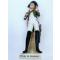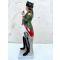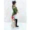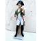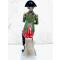 Le personnage en grande tenue, coiffé du bicorne, tient sa cravache des deux mains. Son sabre pend sur la cuisse droite.