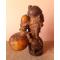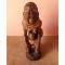 Matières: bois massif, calebasse dans le dos, cordelettes et verre dans les yeux