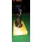 Statuette de perroquet en régule à double patine noire et dorée. Dimensions 14x8x13 cms pour près d'un kilo. Posée sur une terrasse en marbre sienne