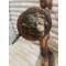 Statuette en métal à patine cuivrée représentant Leonidas en position de lancer de lance, montée sur un socle en marbre avec petite plaqueBelle pièce décorative inspirée de l’iconographie grecque.