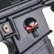 Badge sticker métallique 3D rappelant le punisseur et Deadpool.