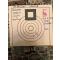 En photo : Cible à 300 mètres, Les trois impacts sont recouverts par une pièce de 1 Euros