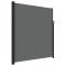 Store latéral rétractable Anthracite 220 x 300 cmCréez instantanément une oasis d'intimité sur votre balcon, terrasse ou patio grâce à ce store latéral rétractable ! Résistant à l'eau et aux UV : ce brise-vue de jardin est fabriqué en 100 % polyester avec un revêtement en polyuréthane (PU), offrant une bonne respirabilité et une excellente protection contre le vent, le soleil, l'eau et les rayons UV. Conception pratique : grâce à sa conception rétractable, le brise-vue de jardin s'enroule automatiquement lorsque vous retirez la poignée du poteau. Installation facile : les deux poteaux se fixent facilement au mur et au sol pour plus de stabilité et de sécurité grâce aux accessoires de montage inclus. Nombreuses applications : ce store latéral polyvalent peut être utilisé dans divers environnements, aussi bien à l'extérieur comme dans un jardin, une terrasse, un jardin, un porche ou un balcon qu'à l'intérieur comme dans un bureau, une clinique, un studio ou un dressing, pour créer un espace mural supplémentaire selon les besoins. Attention : Risque de blessure ! Lors de la réparation, de la modification, du démontage et de l'élimina tion du système d'ombrage, les pièces sous tension (p. ex. les bras articulés, les systèmes de con tre-tension) doivent être complètement détendues ou sécurisées au préalable. Pour ce faire, il convi ent de faire appel à un spécialiste ! N'utilisez pas le store s'il est endommagé et doit être réparé ou ajusté. L'auvent latéral doit être rentré si la vitesse du vent est supérieure à 28 km/h. L'auvent latéral doit être rentré en cas de conditions météorologiques défavorables, telles que de fortes pluies ou de la neige. L'utilisation dans des conditions de gel peut endommager le produit. Attention : Risque d'in cendie ! N'utilisez pas de barbecues, de chauffages, d'appareils de cuisson ou de bougies à proximité de l'auvent. Attention lors de l'installation, des risques d'écrasement et de cisaillement peuvent exister. Attention aux doigts lors de l'installation. Pour éviter tout risque d'étouffement, gardez ce sac en plastique hors de portée des bébés et des enfants. N'utilisez pas ce sac dans les berceaux, les lits, les carrosses ou les parcs. Ce sac n'est pas un jouet. Danger! Risque de chocs. Tenir les petites pièces hors de portée des enfants.Avertissement: Le fonctionnement dans des conditions de gel peut endommag er le produit. Utilisation externe dans les bâtiments et autres travaux de construction GPSR