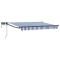 Store rétractable manuel avec LEDs Bleu et Blanc 3,5 x 2 mCe store manuel d'extérieur avec LEDs solaires apporte ombre et lumière pour tous vos espaces. Avec son design rétractable, vous pouvez facilement l'ajuster pour avoir juste ce qu'il faut d'ombre. Les LEDs solaires vous éclairent le soir, sans avoir besoin de prise. Tissu résistant à l'eau : Fabriqué en polyester avec un revêtement PU, il est fait pour résister au soleil et à la pluie. Idéal pour l'extérieur, il assure ombre et protection par tous les temps. Construction robuste : Le cadre en acier et aluminium peint fournit un support solide. Ces matériaux sont résistants à la corrosion et garantissent une bonne stabilité au quotidien. Fonctionnement manuel : Équipé d'une manivelle pour déployer ou rétracter facilement le store. Vous pouvez ajuster l'ombre selon le soleil et vos envies. Éclairage LED solaire : LEDs rechargeables à l'énergie solaire, qui se chargent la journée et brillent la nuit. Parfait pour éclairer vos soirées en extérieur sans fils gênants. Composants d'installation : Livré avec tous les accessoires nécessaires pour l'installation. Suivez simplement les instructions pour le mettre en place facilement.