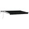 Store rétractable manuel avec LEDs Noir 3,5 x 2,5 mCe store manuel d'extérieur avec LEDs solaires apporte ombre et lumière pour tous vos espaces. Avec son design rétractable, vous pouvez facilement l'ajuster pour avoir juste ce qu'il faut d'ombre. Les LEDs solaires vous éclairent le soir, sans avoir besoin de prise. Tissu résistant à l'eau : Fabriqué en polyester avec un revêtement PU, il est fait pour résister au soleil et à la pluie. Idéal pour l'extérieur, il assure ombre et protection par tous les temps. Construction robuste : Le cadre en acier et aluminium peint fournit un support solide. Ces matériaux sont résistants à la corrosion et garantissent une bonne stabilité au quotidien. Fonctionnement manuel : Équipé d'une manivelle pour déployer ou rétracter facilement le store. Vous pouvez ajuster l'ombre selon le soleil et vos envies. Éclairage LED solaire : LEDs rechargeables à l'énergie solaire, qui se chargent la journée et brillent la nuit. Parfait pour éclairer vos soirées en extérieur sans fils gênants. Composants d'installation : Livré avec tous les accessoires nécessaires pour l'installation. Suivez simplement les instructions pour le mettre en place facilement.
