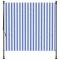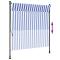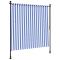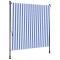 Store roulant d'extérieur bleu et blanc 150x270 cm tissu acierProfitez d'une boisson fraîche, d'une délicieuse gâterie ou d'une conversation agréable avec des amis sur votre terrasse tout en vous détendant derrière ce store roulant d'extérieur ! Matériau durable : le cadre d'écran d'intimité est fabriqué en acier, ce qui est robuste et durable. Le tissu avec traitement de surface PU est résistant aux UV. Il évitera à votre famille ou à vos invités d'être exposés aux rayons UV et à la lumière éblouissante du soleil. Fonction rétractable : grâce à la manivelle de la poignée, le store roulant est rétractable pour répondre à vos différents besoins. Il fournit de l'ombre rafraîchissante lorsque vous vous étirez et ne bloque pas la vue lorsqu'il est rétracté aussi. Hauteur réglable : la hauteur des tiges de support peut être réglée entre 225 et 275 cm pour s'adapter à une large gamme de hauteurs de plafond. Nombreuses applications : le store d'extérieur présente un design simple et élégant qui s'intégrera bien dans votre maison ou environnement commercial. Il convient à une variété d'endroits, tels que les balcons, les patios, les cours, les restaurants, les cafés, les magasins, et plus encore.