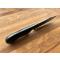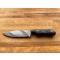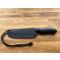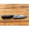 Ce modèle est conçu en acier carbone XC 75, avec trempe sélective de la lame (visible sur les photos), finition "gun blue" et plaquettes en micarta noir. Livré avec étui moulé en kydex.
