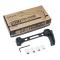 Un point d'attache QD permet l'ajout rapide d'une sangle tactique. Avec un poids contenu de 282 g, cette crosse allie robustesse et légèreté pour résister aux conditions d'utilisation les plus exigeantes. Sa structure ajourée en aluminium assure à la fois durabilité et efficacité sur le terrain.
