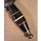 Poignée garnie de rondelles de corne de chèvre,os de bovin,cuivre,et laiton.