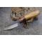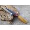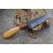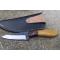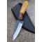 Couteau de Survie Bushcraft Survie à lame fixe - Longueur totale 17.5cm - Longueur de lame 8cm - Lame en acier carbone 1075 - Lame type trailing point plain edge finition 2 tons - Construction d'une seule pièce - Full tang - Plaquettes du manche en bois - Mitres en bois - Etui simili cuir - Fabrication artisanale