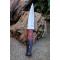 Stylet Couteau Dague de Poche Lame Acier Carbone 1075 Manche Bois Etui Cuir Fabric Artisanale