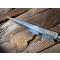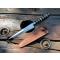 Stylet Corse à la génoise. Lame forgée en acier XC75, manche réalisée de manière traditionnelle par Empilement de corne de chèvre et de rondelles en laiton. Fourni avec son étui en cuir.