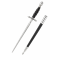 La lame triangulaire en acier carbone 420 incarne parfaitement la vocation du stiletto : pénétration maximale et rigidité accrue. Contrairement aux lames tranchantes, cette géométrie privilégie la perforation, ce qui en fait une pièce historiquement cohérente et techniquement aboutie.