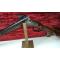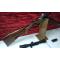 Superbe drilling Josef Hambrush de ferlach à faux corps à fonds creux, cal 16/70 et 7x65R, les bois, les quadrillages ainsi que le poncé/huilé sont neufs. Arrière de crosse quadrillée. Joue Bavaroise à double filets et cravatte. Poignée pistolet avec Kaisergriff. PMontet en corne. L'arme est équipée d'une optique Allemande 4 x 36 ret 1 et un Burris 3 sur serrure arrière du crochet sur embase EAW.