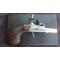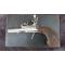 Rare pistolet a l'écossaise à silex avec cran de sécurité en parfait état, les bois comme les parties méralliques, le canon se dévisse a la main, la percussion puissante, très ingénieux cran de sécurité qui est monté sur le dessus que l'on pousse ou que l'on tire selon si on veut vérrouiller ou déverrouillé l'arme. L. 16 cm.