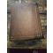 Reliure rigide à décor en relief moulé représentant une scène allégorique (femme et vase floral).