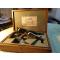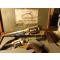 Original coffret en chêne américain d'époque, contenant deux Rémington "Pietta" père et fils" calibre 44 et 31 pocket à percussion, probablement 2ème génération au vu des marquages sur les deux pièces conformes à ceux d'époque. Patine ancienne, en parfait état de tir (tès peu tiré, très bien entretenus, canon, chambres barillet pour les deux pièces absolument miroir) plaquettes de crosses en noyer américain pour les deux révolvers joliment sculptées.