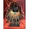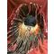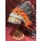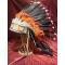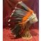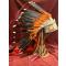 Rare à la vente superbe coiffe indienne fabriqué en peau de cerf drap de laine ornée de décoration ( broderie en piquant de porc epic ). Old style. Composée de 50 plumes de corbeaux rehaussées de crin de cheval plumes de coq et peau de cerf à la base de la plume.perles de type pony bead.