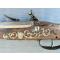 La platine à silex rappelle celle des fusils d’officier modèle 1755. À noter : le bassinet à facettes, dépourvu de bride, confirme bien la datation de l’arme dans cette période.