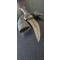 La lame, traditionnellement légèrement courbée, est en acier forgé avec un tranchant central. Aucune rouille, mais une superbe patine de la lame en carbone. Laissant apparaître qqs gravures