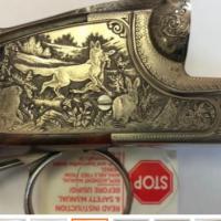 Tres jolie merkel avec platines démontables style Holland Holland...canon acier bohler,crosse en jolie noyer,belles gravures de scènes de chasse ,triple verrou greener,indicateur d armement ....le fusil est en tres tres bonne état. Les chokes sont d origine demie et full .
