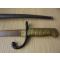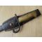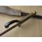 Vous remarquerez la présence d'une peinture fort ancienne "dorée" sur la poignée en laiton ainsi qu'à l'extrémité du fourreau. Ce dernier a reçu une peinture noire, tout comme le quillon, sans nul doute dans un souci de présentation esthétique.