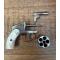 L’arme est entièrement nickelée, avec un rendu brillant très flatteur, et décorée de fines gravures florales présentes sur le bâti, le barillet, le canon et certaines pièces périphériques. L’ensemble donne une pièce très luxueuse, typique des armes civiles de poche haut de gamme de la fin du XIXe siècle.