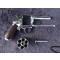 Revolver Cal 11 mm. Six coups à chargement par la portière et système en double action. Canon octogonal et plaquettes en bois quadrillé. Travail liégeois du dernier quart du XIXe siècle, petit défaut sur le cran de sureté . superbe révolver.
