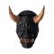 Un visage Oni détaillé : cornes sculptées, traits marqués, expression intimidante