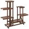 Support à fleurs avec roues 95x25x101 cm bois massif de sapinCe support à fleurs en bois est un choix parfait pour garder et exposer des plantes et d'autres objets décoratifs. Bois de sapin durable : ce support à plantes est fabriqué en bois de sapin, robuste et durable, ce qui lui assure des années de service. En outre, grâce à une fabrication artisanale soigneusement carbonisée, ce présentoir à fleurs en bois présente d'excellentes performances en matière d'étanchéité à l'humidité et de résistance aux intempéries.Beaucoup d'espace : ce porte-plantes offre suffisamment d'espace pour présenter vos plantes et autres objets décoratifs.Applications larges : avec sa couleur naturelle carbonisée et sa texture de bois, ce porte-plantes en bois apporte une touche rétro et élégante aux lieux décorés. De plus, l'aspect symétrique s'adapte à différents styles de décoration, tels que le salon, le balcon ou le patio.Roulettes bien pensées : avec des roulettes pivotantes à 360 degrés, les étagères à plantes sur roues peuvent être déplacées en toute flexibilité.