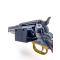 Un pignon ajusté rentre dans une des chambres du barillet par l'avant et avec le poids de l'arme, celle-ci est calée et stable sur son support.