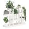 Support à plantes Blanc 104,5x25x77,5 cm Bois massif de pinExposez vos fleurs et plantes préférées avec ce charmant support à plantes en bois et rendez votre espace actuel attrayant ! Bois de pin massif : le bois de pin massif est un matériau naturel magnifique. Le bois de pin a un grain droit et les noeuds donnent au matériau son aspect caractéristique et rustique. Cadre stable : le cadre en bois assure robustesse et stabilité. Grand espace : ce support pour pots de fleurs possède des étagères de différentes hauteurs avec suffisamment d'espace pour exposer vos plantes en pot ou vos ornements de jardin préférés. Design unique : le design unique de l'étagère à plantes affiche joliment vos fleurs et aide les plantes à recevoir plus de soleil et à mieux pousser. De plus, ce support pour plantes d'extérieur est sûrement un beau supplément à votre salon, patio et jardin. Avertissement : Afin d'éviter qu'il ne bascule, ce produit doit être utilisé avec le dispositif de fixation murale fourni. Remarque : Chaque produit est livré avec un manuel de montage dans la boîte pour un montage facile.