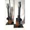 Support présentoir de baïonnette avec socle en bois teinté chêne clair et plaque métal gravée.