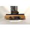 Support présentoir de baïonnette avec socle en bois teinté chêne clair et plaque métal gravée.