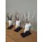Dimension 20cmx10cm hauteur 18cm , l'épaisseur du support est d'environ 65mm ce qui lui donne un aspect massif(environ 1KG100 par support). La vente est pour un socle, la photo dans l'annonce est un exemple de présentation.