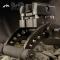 Les 'oreilles' utilisent un système de fixation à boucles et crochets et peuvent être retirées pour ajouter des entretoises pour une variété d'épaisseurs de crosse. La distance standard entre les oreilles peut accueillir des crosses entre 18 et 25 mm.