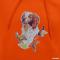 Le sweat à capuche arbore une couleur orange vif, assurant visibilité et modernité. La sérigraphie représente un épagneul entouré de gibier.