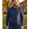 Sweat-shirt homme BELFAST4 marine en polyester coton, col montant zippé. Robuste et pratique avec renforts épaules, poche poitrine et finitions bords-côtes.
