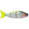 Le Jointed Claw Ratchet 184 est swimbait flottant articulé en 3 parties qui présente une forme plus haute et un profil plus volumineux que celui du célèbre Jointed Claw. Cette nouvelle version a été conçue avec une articulation principale classique et une seconde articulation en plastique souple qui lui permet de nager amplement à vitesse réduite et de façon plus serrée à vitesse élevée. Nous vous le conseillons particulièrement pour la traque du brochet et des gros black-bass.