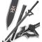 Magnifique reproduction tout en acier de l'épée Elucidator de Kirigaya Kazuto Kirito tiré de Sword Art Online. Lame en acier tranchante de type Maru 1050. Fourreau en bois noir. Garde en acier.