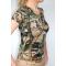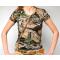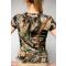 T-Shirt Femme 100% coton, coupe cintrée, col en V en camouflage 3D origne Afrique du Sud. Beau Tee-shirt. Derniers exemplaires.