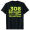 T-shirt avec inscription ".308 BECAUSE ROCKS AREN’T EFFECTIVE AT 700 METERS"